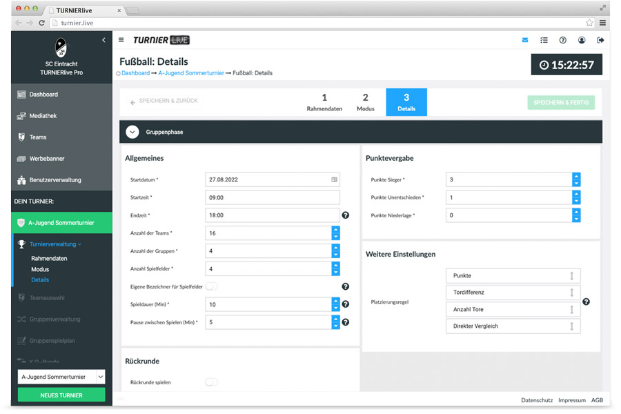 TURNIERlive hilft Turnierveranstaltern in wenigen Minuten ein komplettes Turnier zu planen und live zu schalten